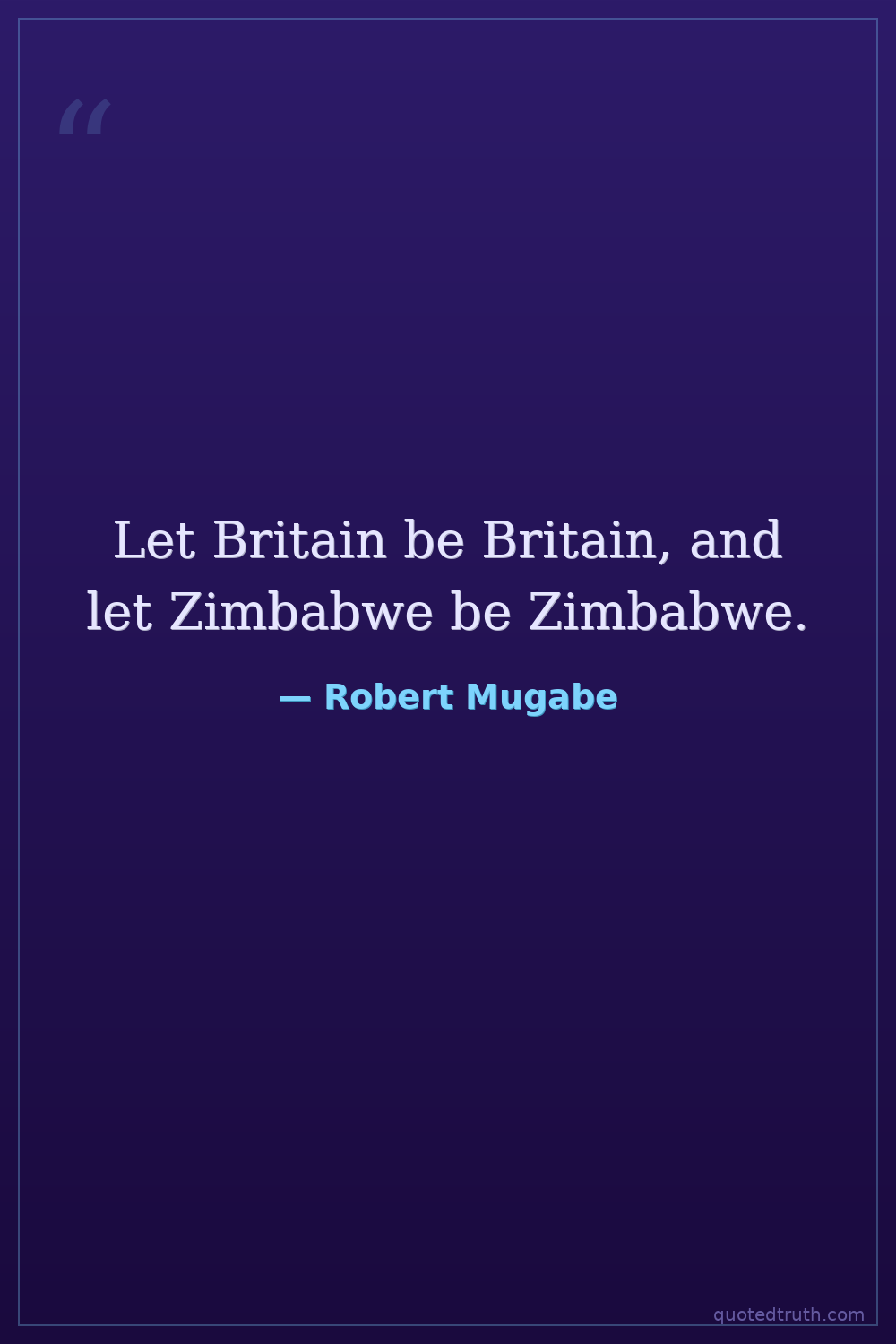 Let Britain be Britain, and let Zimbabwe be Zimbabwe.