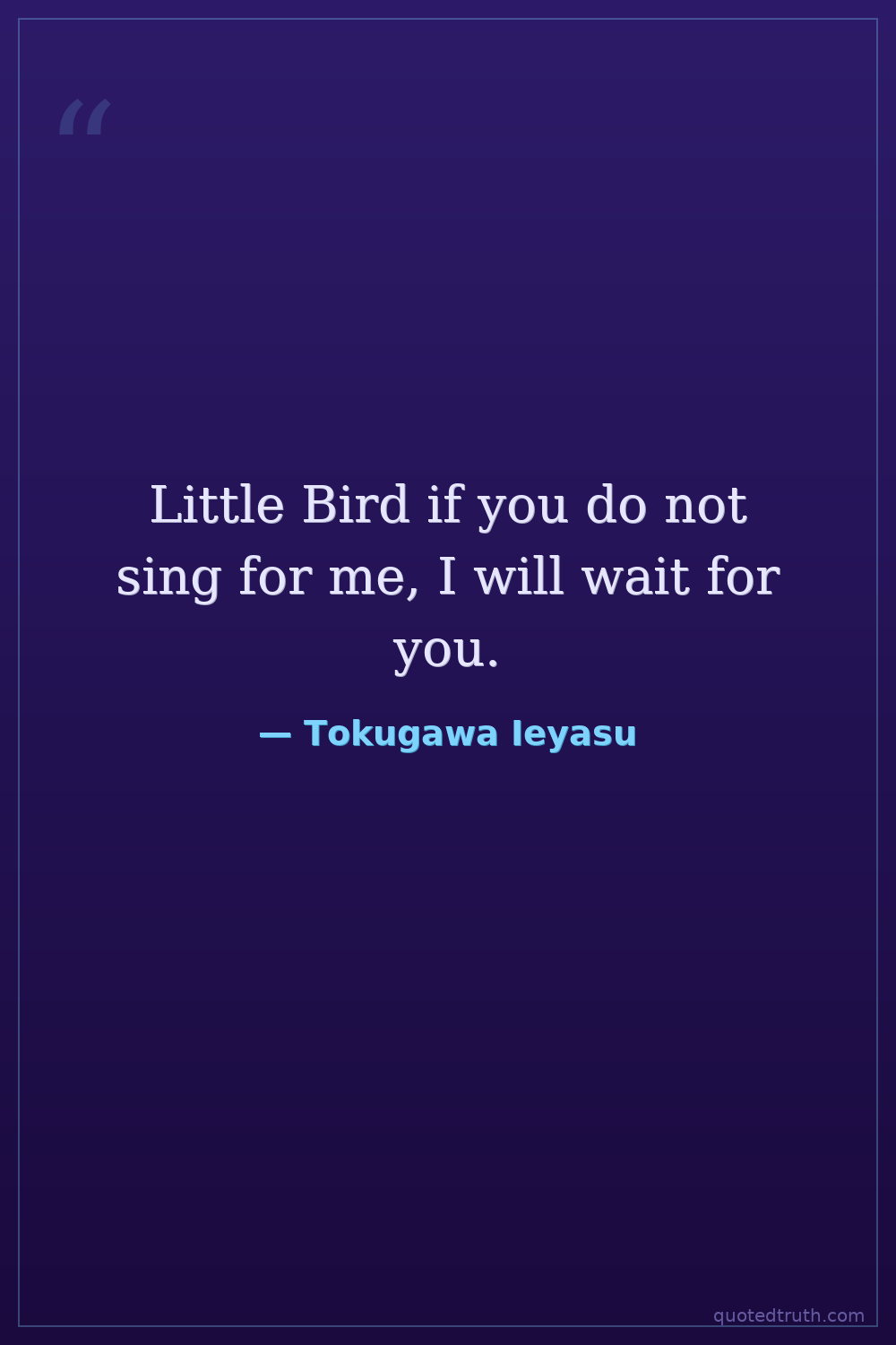 Part of a famous anecdote contrasting his patience with Oda Nobunaga's and Toyotomi Hideyoshi's approaches to a cuckoo bird.