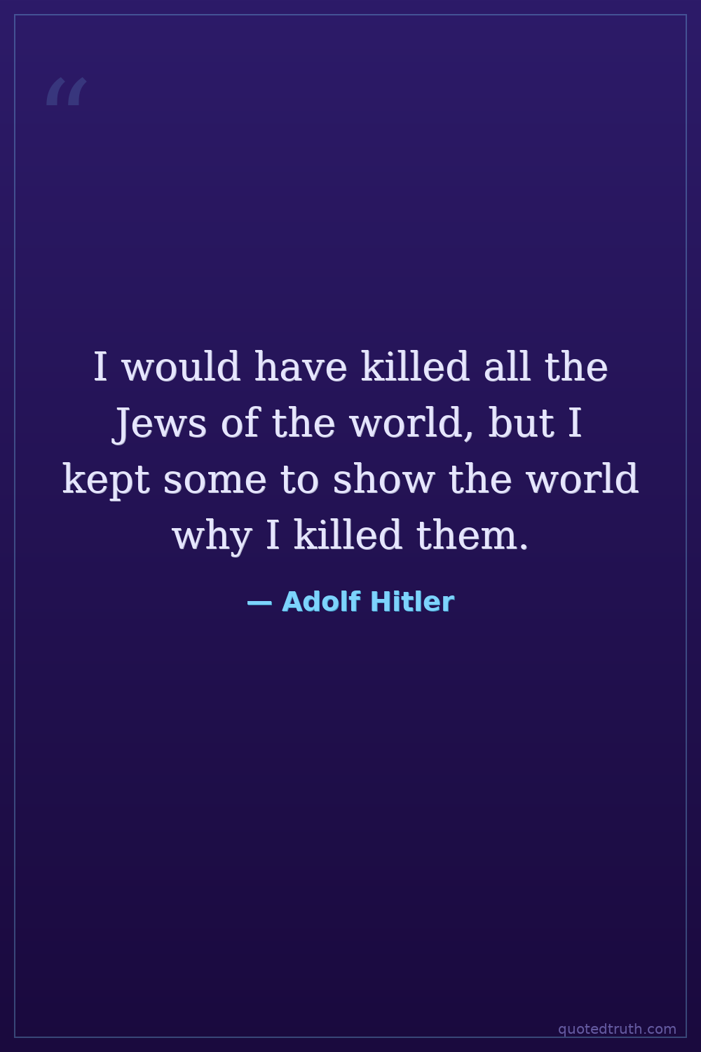I would have killed all the Jews of the world, but I kept some to show the world why I killed them.