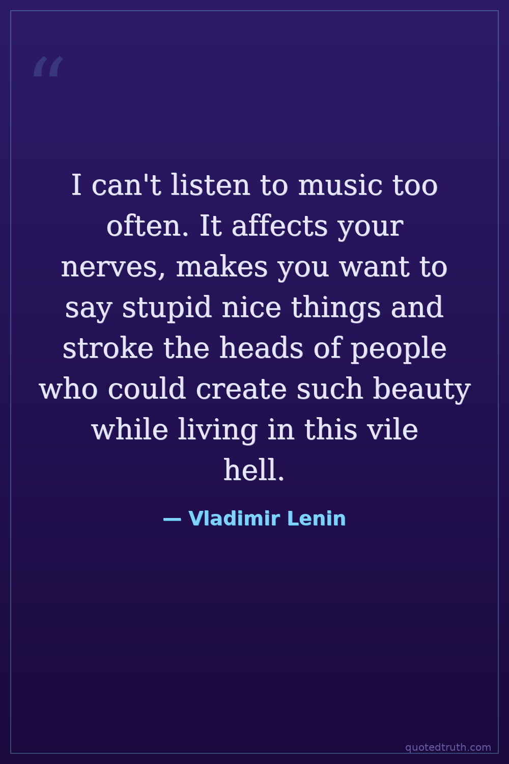 I can't listen to music too often. It affects your nerves, makes you want to say stupid nice things and stroke the heads of people who could create such beauty while living in this vile hell.