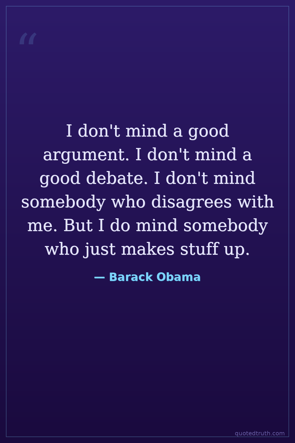 I don't mind a good argument. I don't mind a good debate. I don't mind somebody who disagrees with me. But I do mind somebody who just makes stuff up.