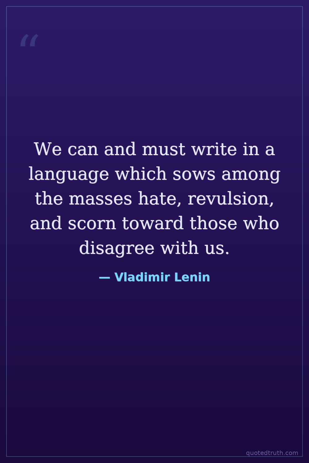 We can and must write in a language which sows among the masses hate, revulsion, and scorn toward those who disagree with us.