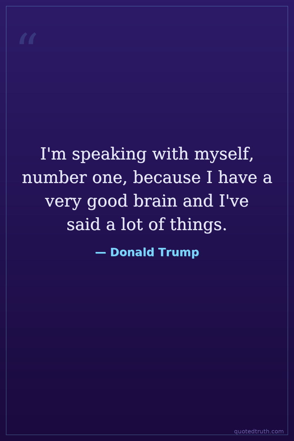 I'm speaking with myself, number one, because I have a very good brain and I've said a lot of things.