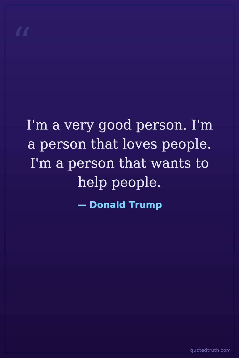 I'm a very good person. I'm a person that loves people. I'm a person that wants to help people.