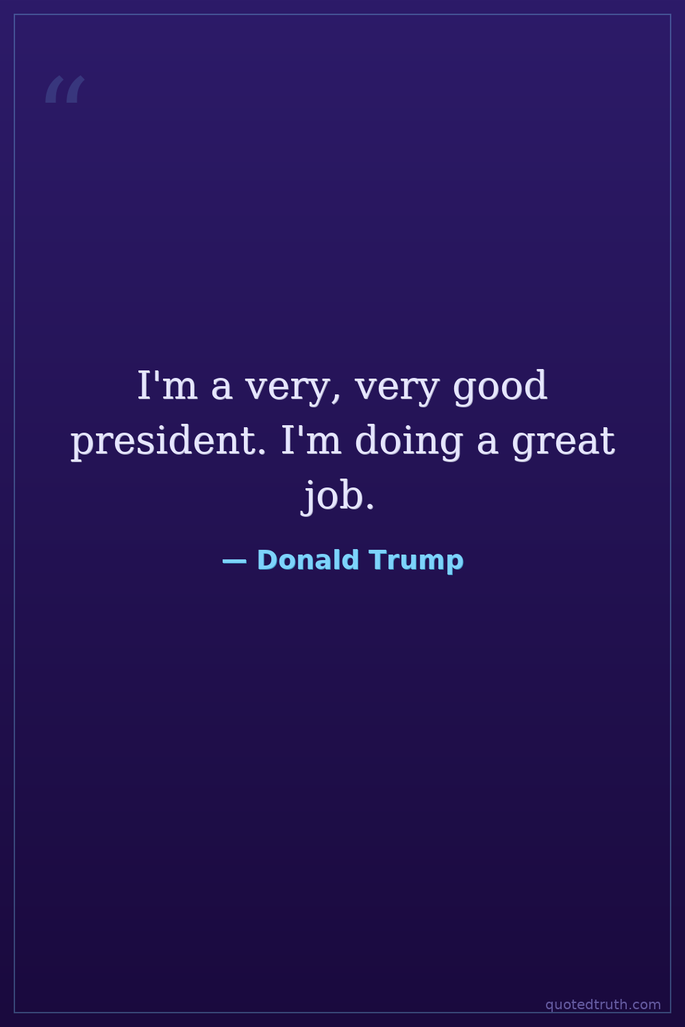 I'm a very, very good president. I'm doing a great job.