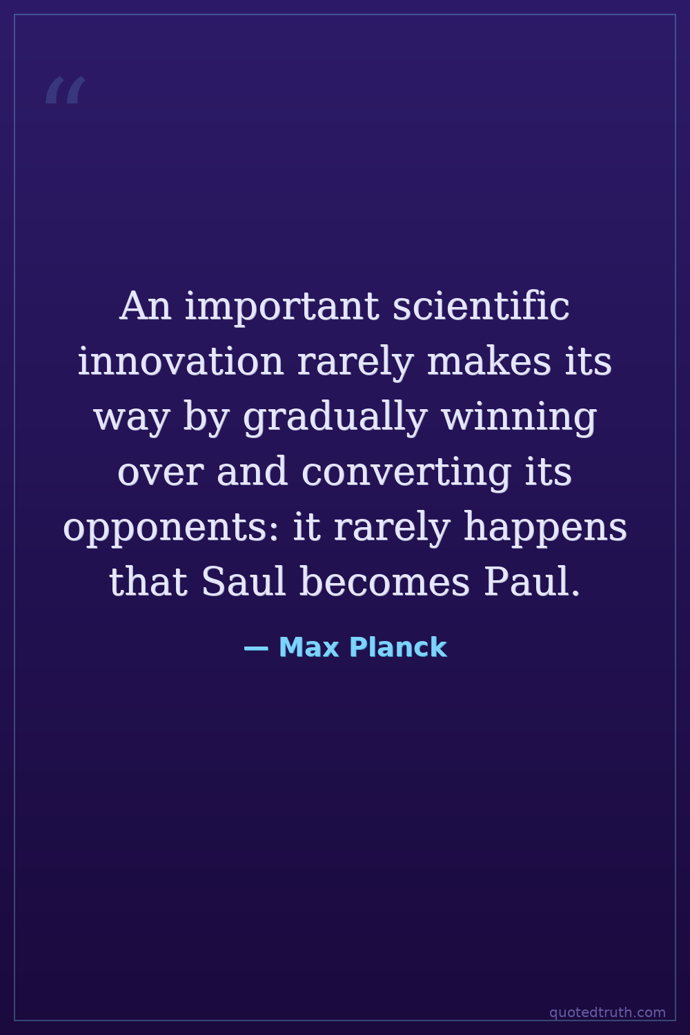 An important scientific innovation rarely makes its way by gradually winning over and converting its opponents: it rarely happens that Saul becomes Paul.