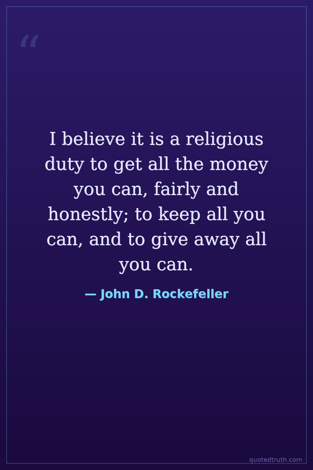 I believe it is a religious duty to get all the money you can, fairly and honestly; to keep all you can, and to give away all you can.