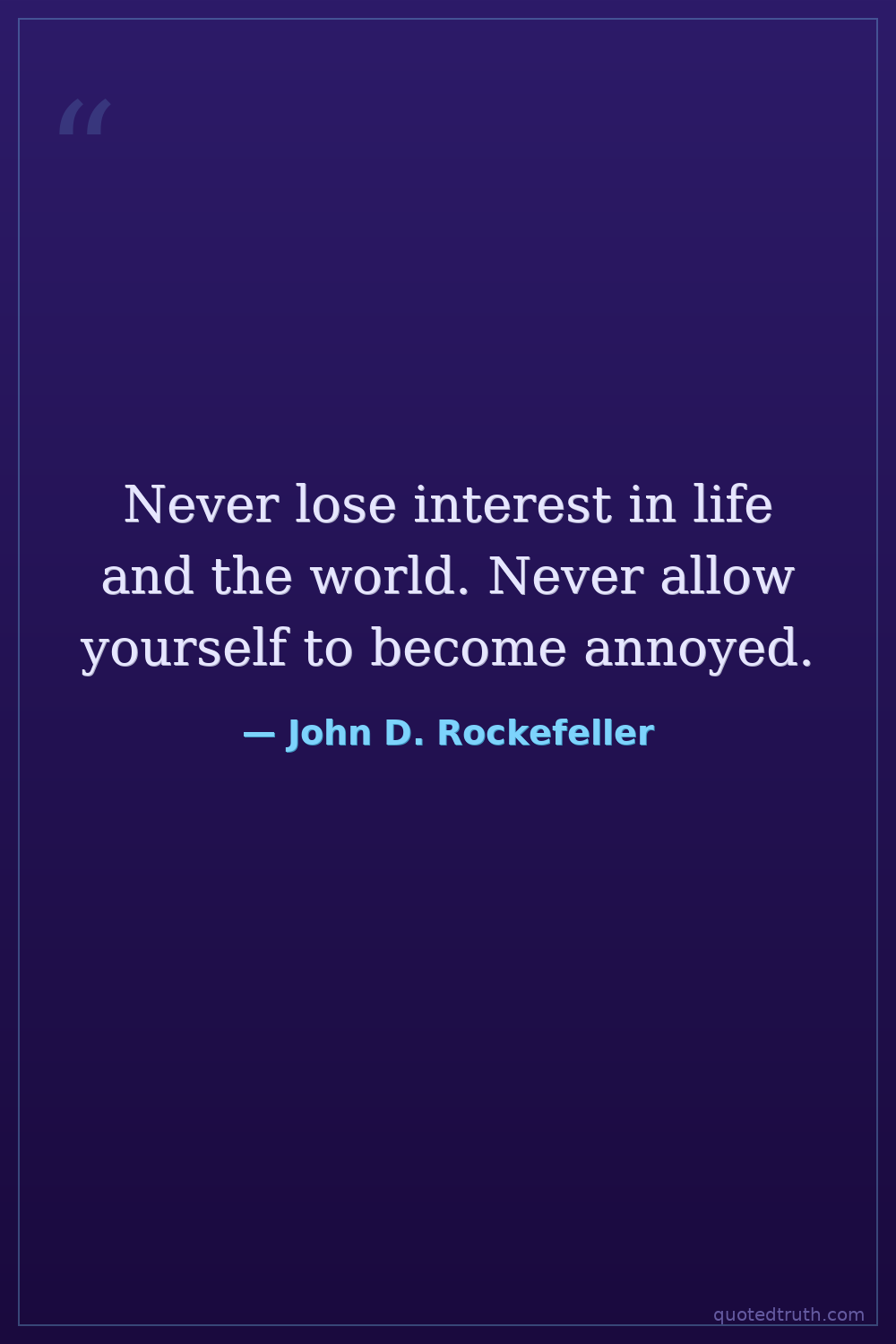 Never lose interest in life and the world. Never allow yourself to become annoyed.