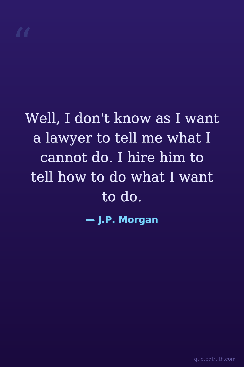 Well, I don't know as I want a lawyer to tell me what I cannot do. I hire him to tell how to do what I want to do.