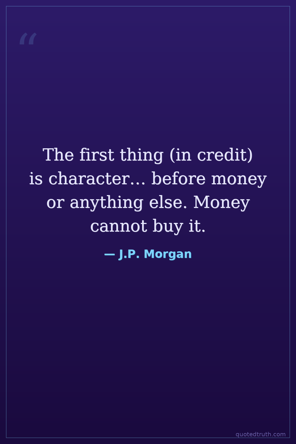 An unexpected emphasis on intangible qualities like character over tangible assets in finance.