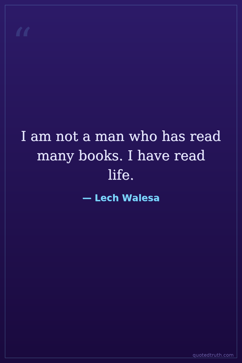 I am not a man who has read many books. I have read life.