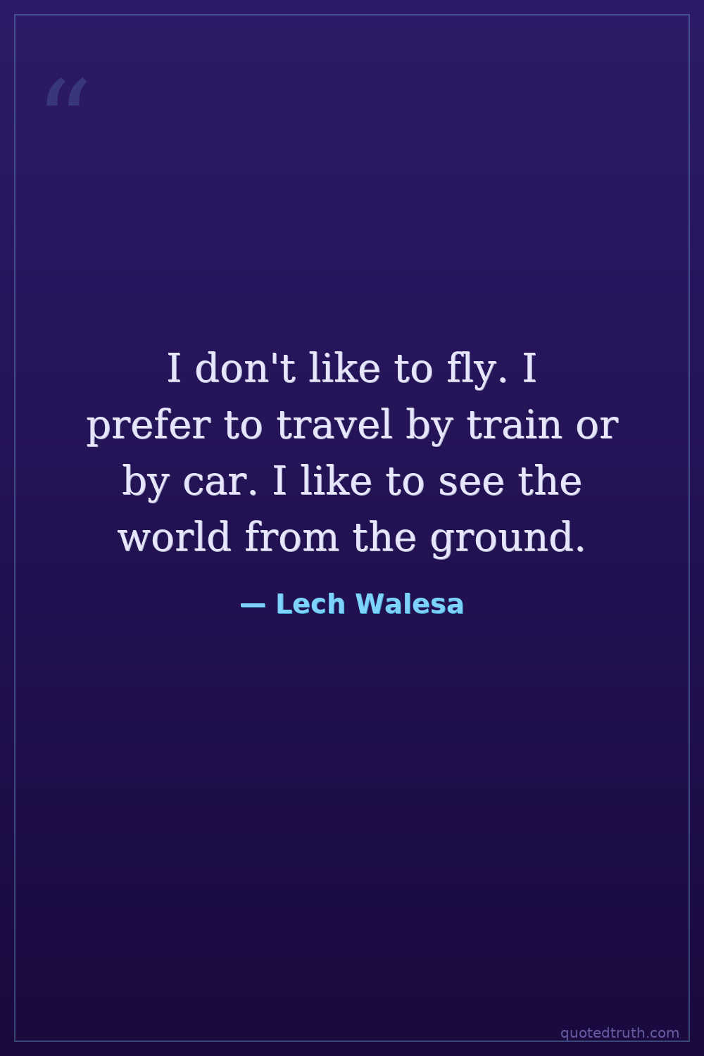 I don't like to fly. I prefer to travel by train or by car. I like to see the world from the ground.