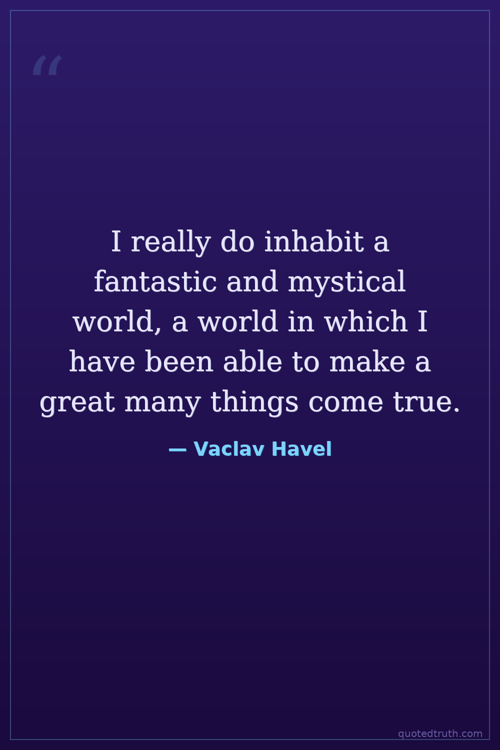 I really do inhabit a fantastic and mystical world, a world in which I have been able to make a great many things come true.