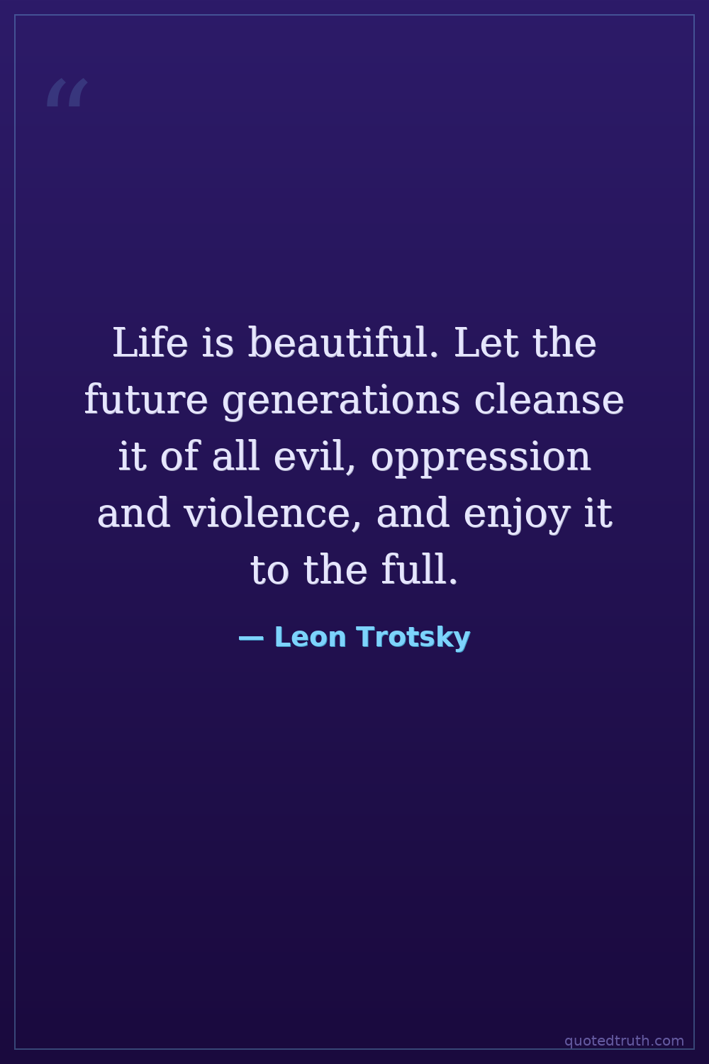 Life is beautiful. Let the future generations cleanse it of all evil, oppression and violence, and enjoy it to the full.