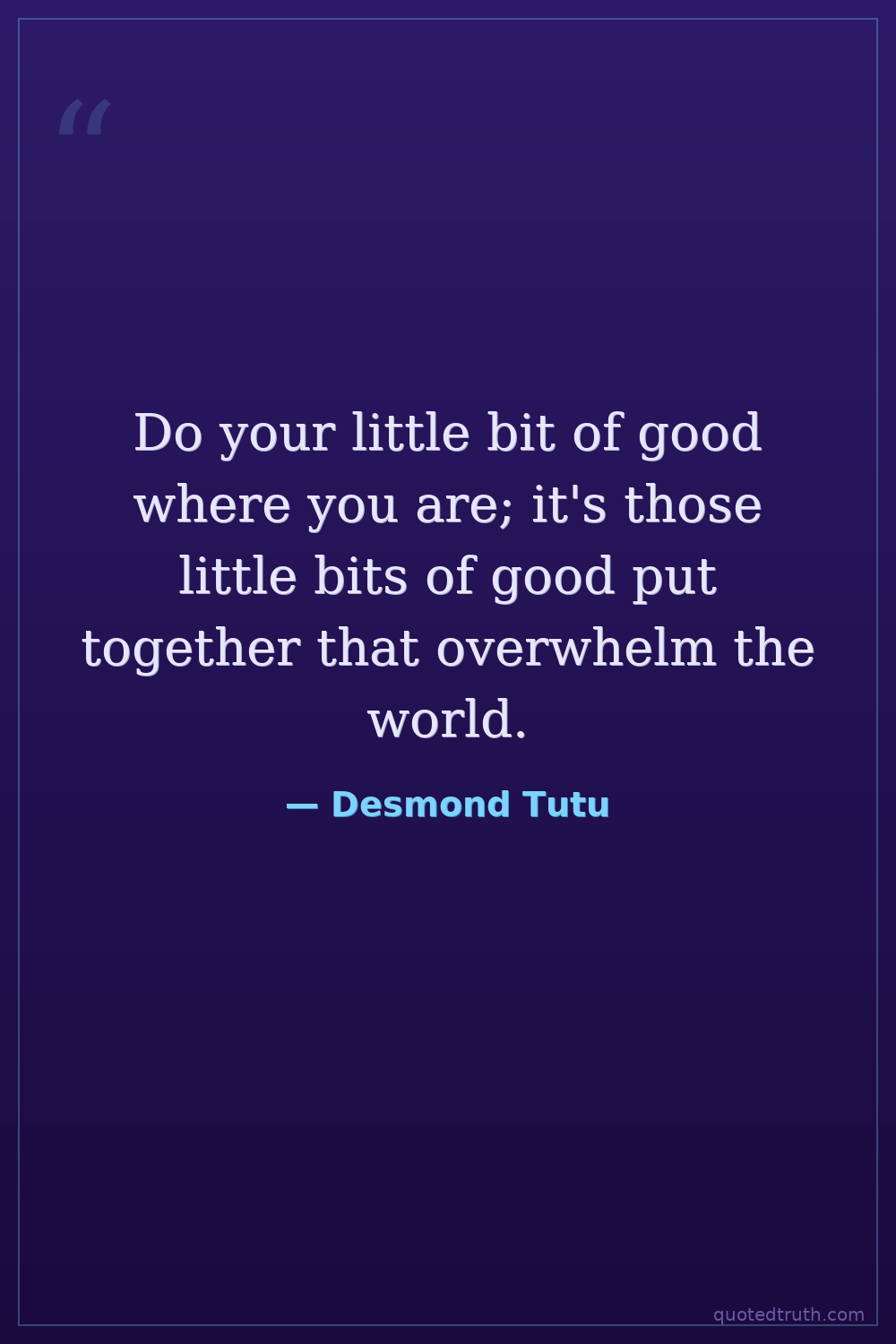Do your little bit of good where you are; it's those little bits of good put together that overwhelm the world.