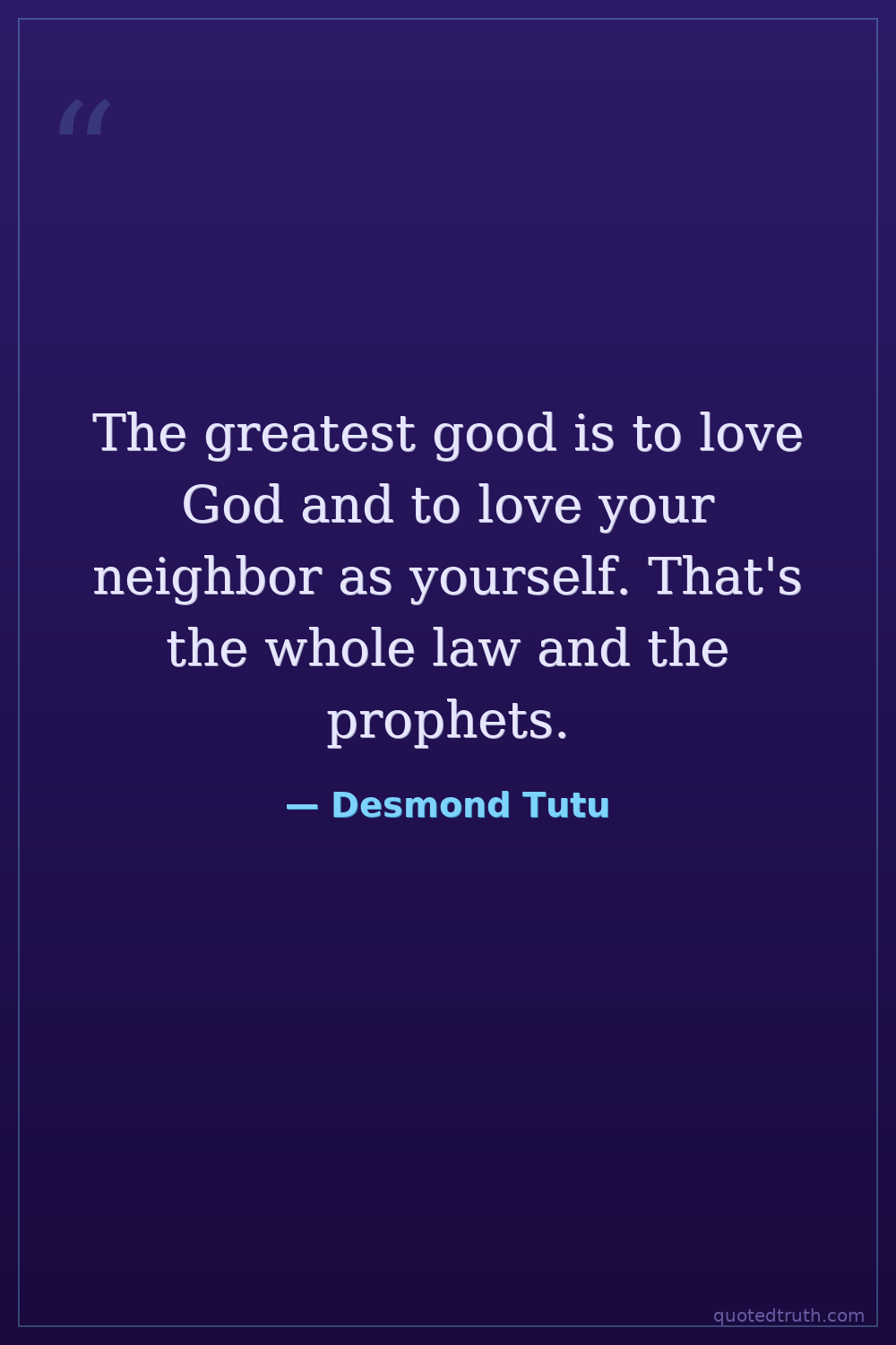The greatest good is to love God and to love your neighbor as yourself. That's the whole law and the prophets.