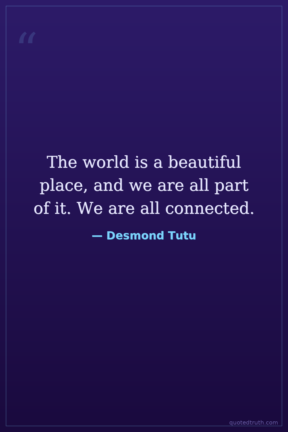 The world is a beautiful place, and we are all part of it. We are all connected.