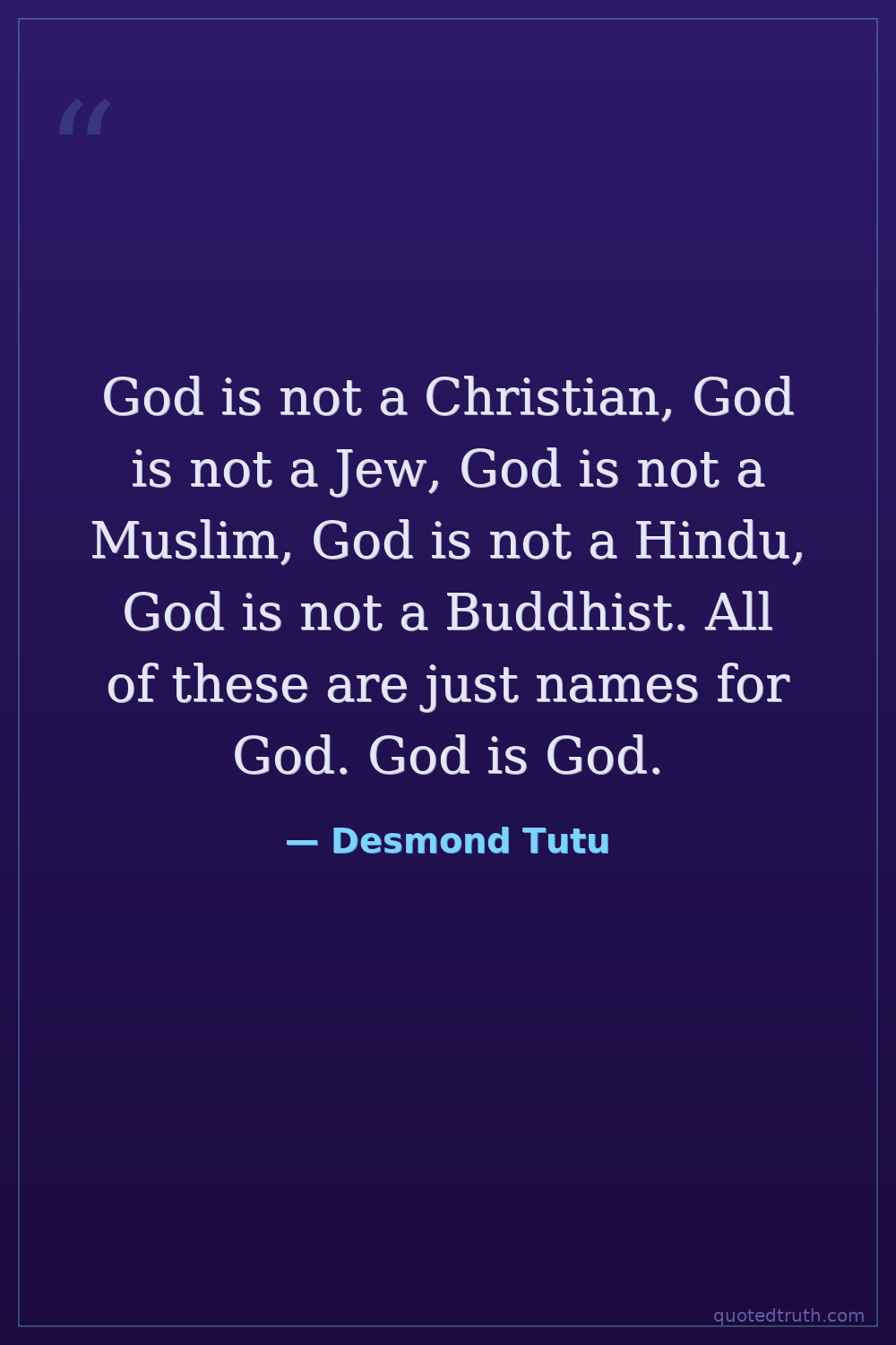 God is not a Christian, God is not a Jew, God is not a Muslim, God is not a Hindu, God is not a Buddhist. All of these are just names for God. God is God.