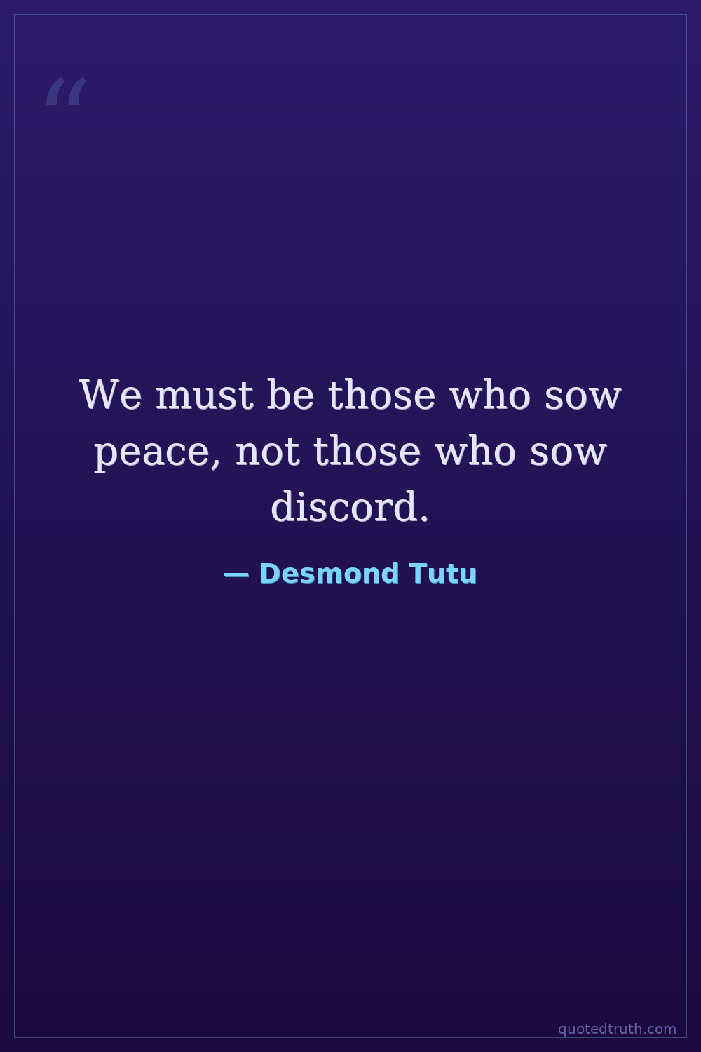 We must be those who sow peace, not those who sow discord.