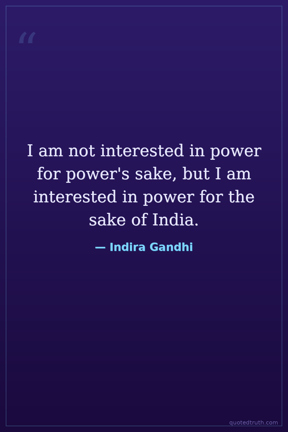 I am not interested in power for power's sake, but I am interested in power for the sake of India.