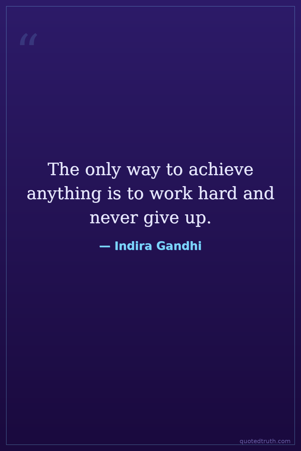 The only way to achieve anything is to work hard and never give up.