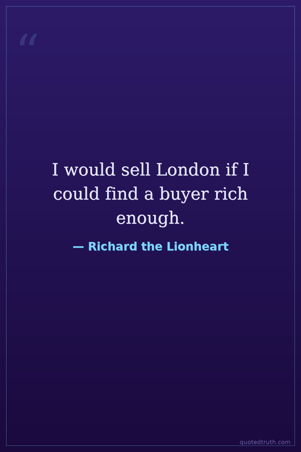 I would sell London if I could find a buyer rich enough.