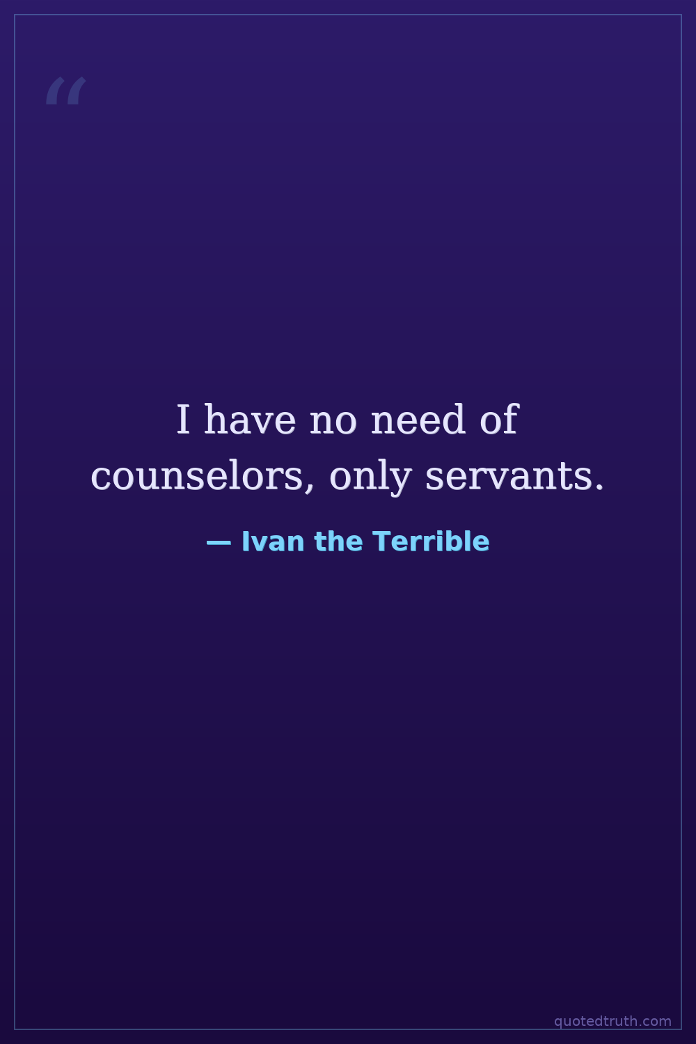 I have no need of counselors, only servants.
