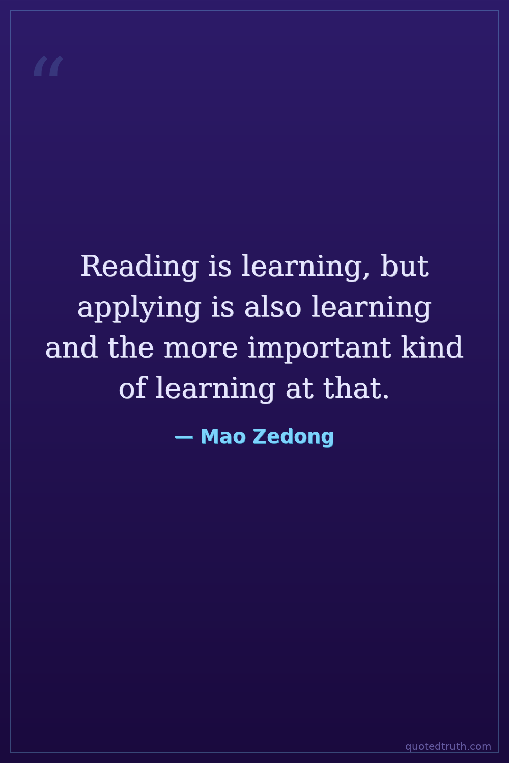 Reading is learning, but applying is also learning and the more important kind of learning at that.