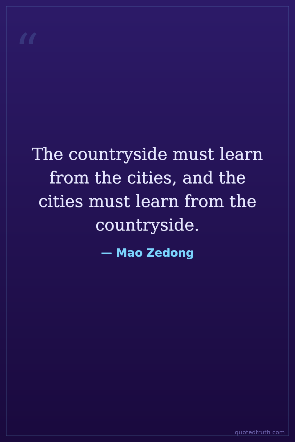 The countryside must learn from the cities, and the cities must learn from the countryside.