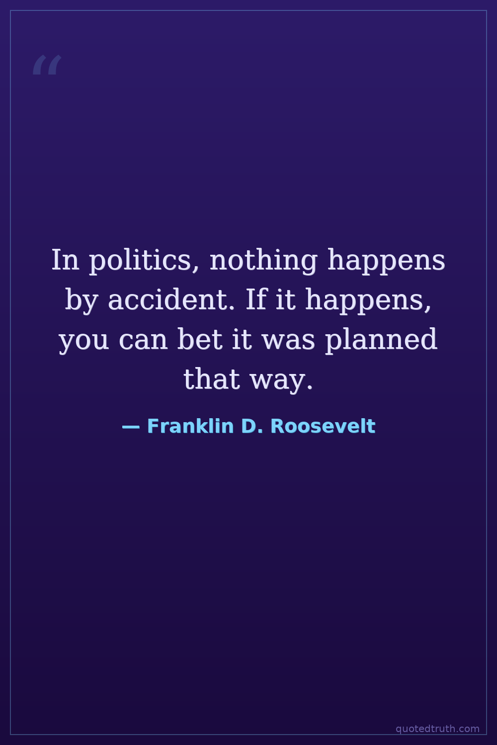 In politics, nothing happens by accident. If it happens, you can bet it was planned that way.