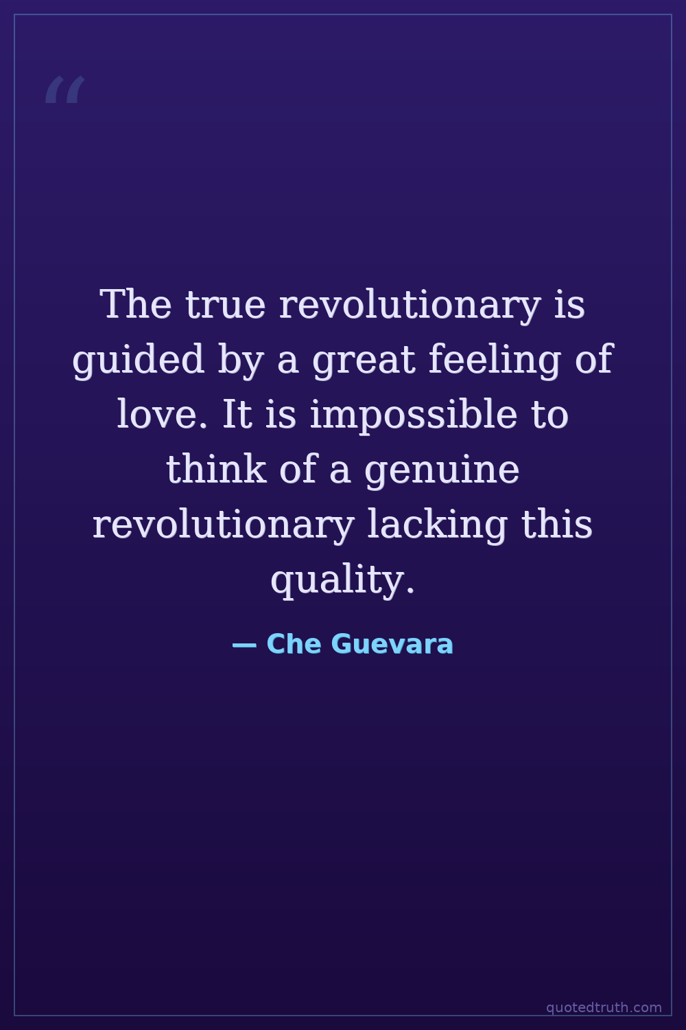 The true revolutionary is guided by a great feeling of love. It is impossible to think of a genuine revolutionary lacking this quality.