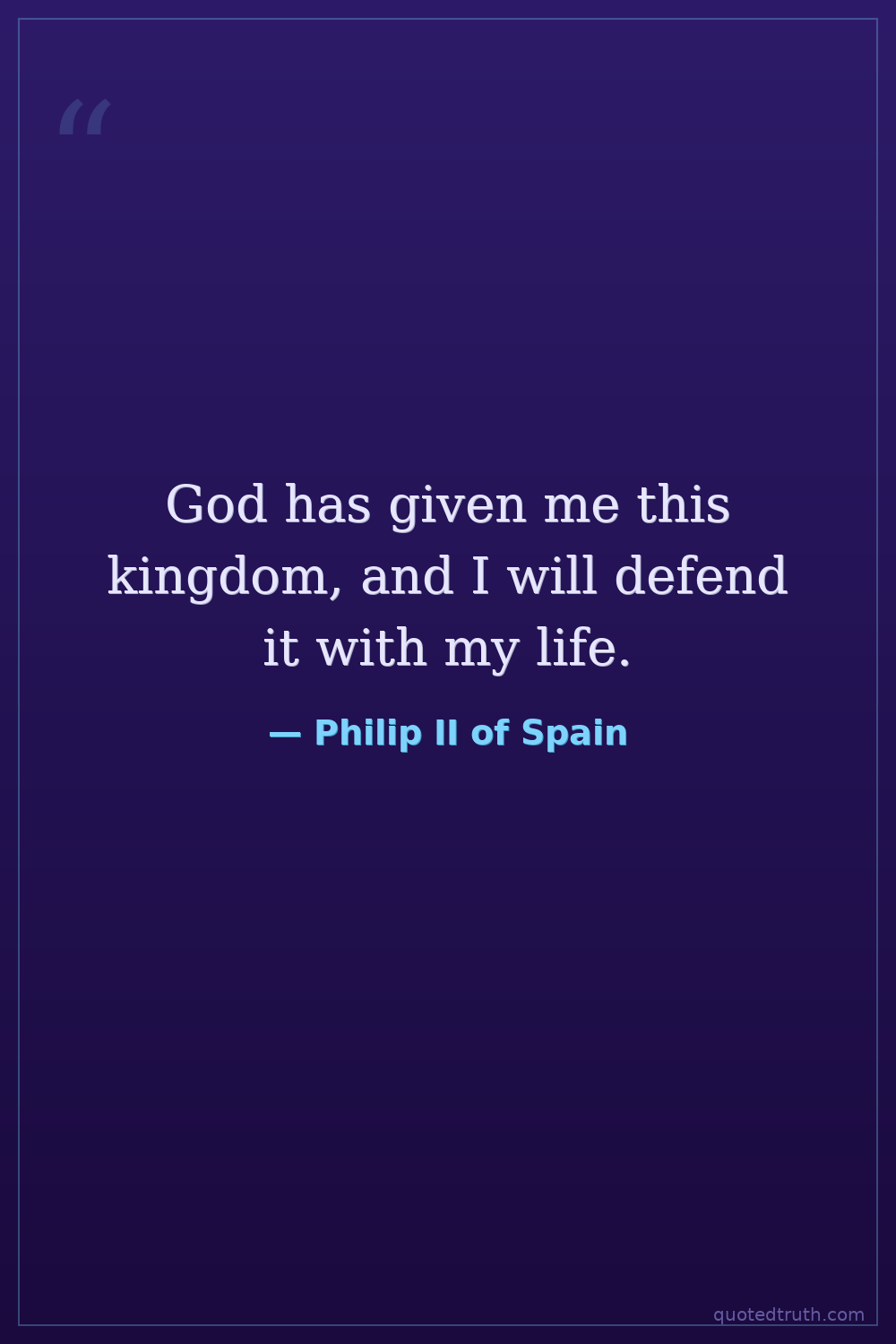 God has given me this kingdom, and I will defend it with my life.