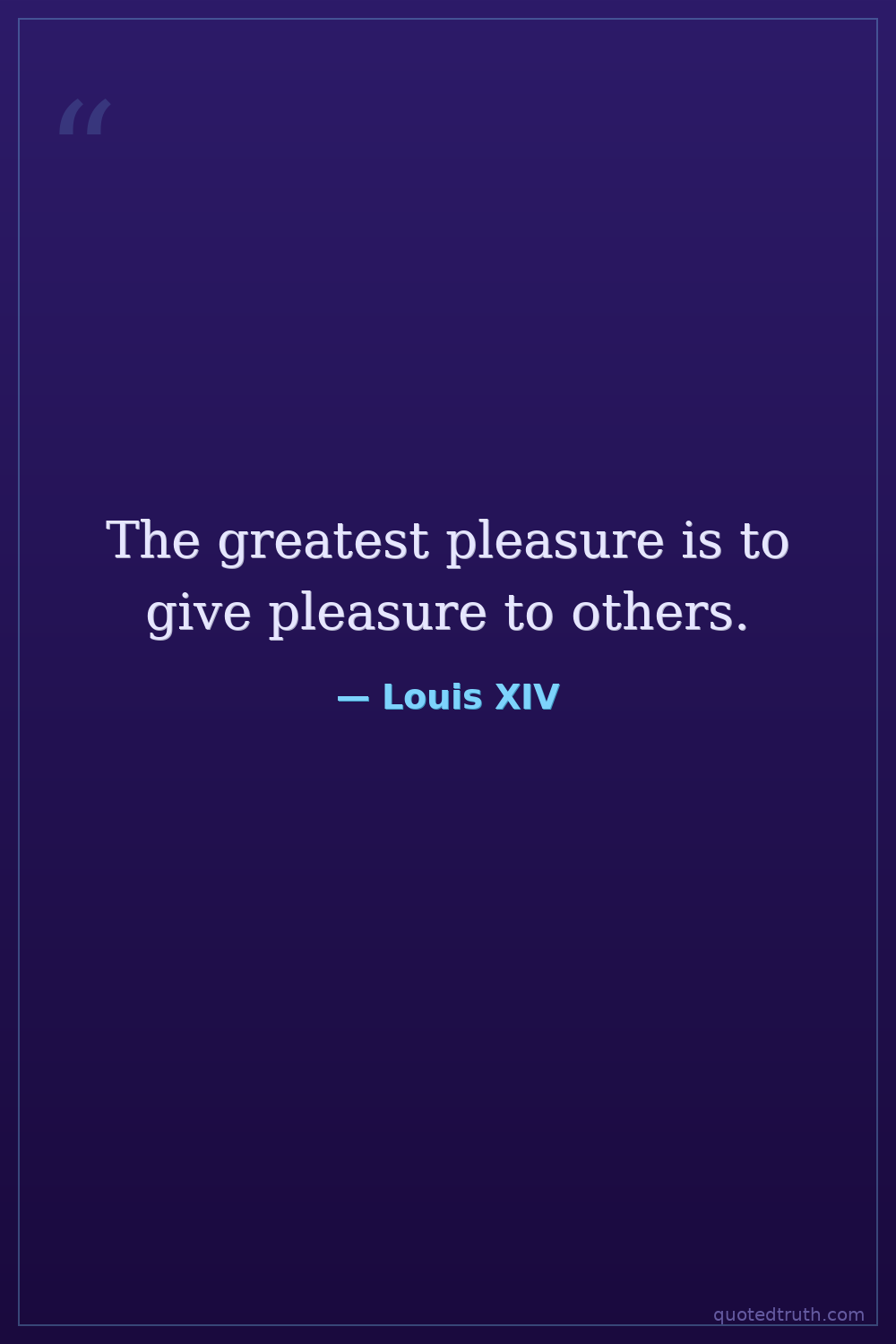 The greatest pleasure is to give pleasure to others.