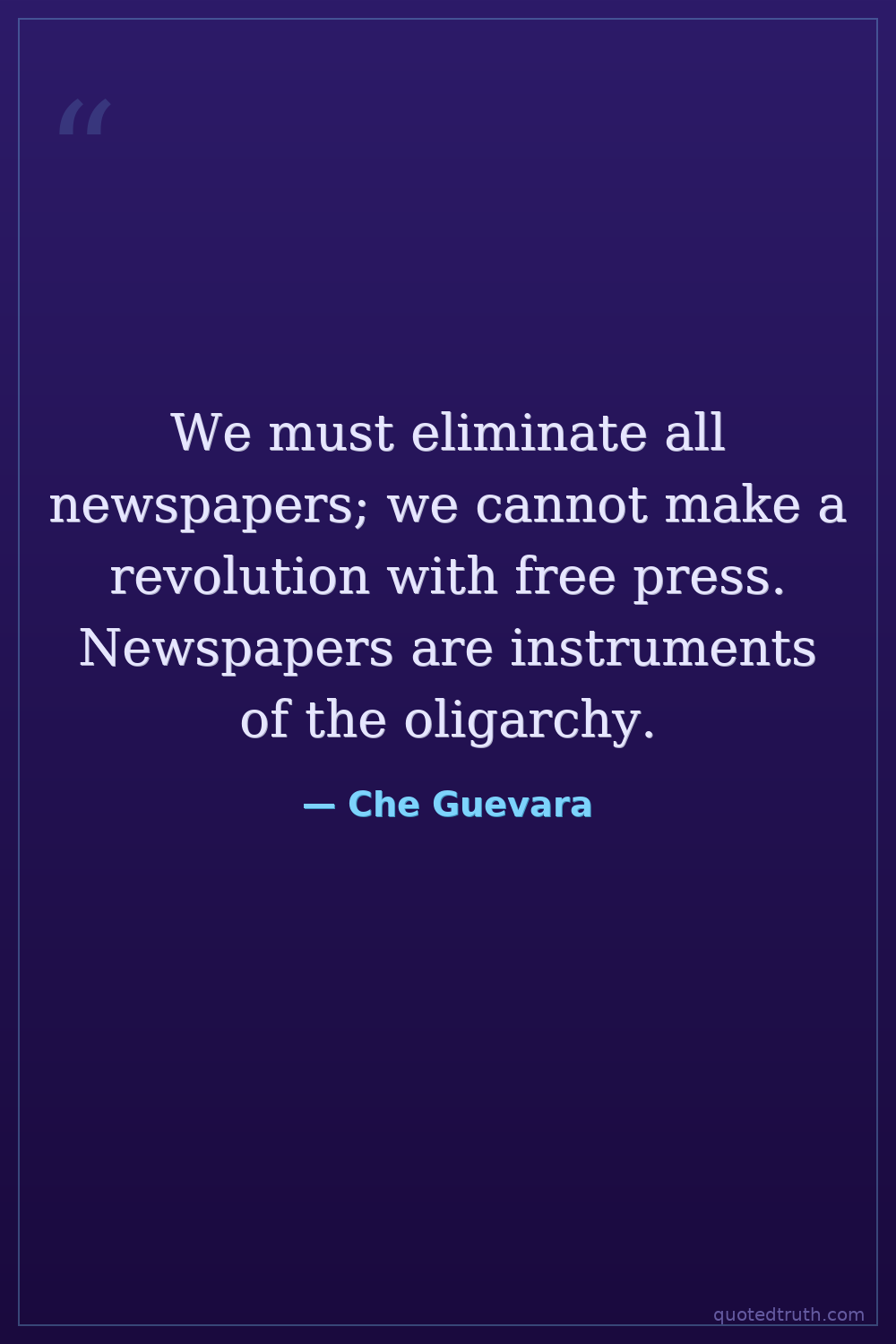 We must eliminate all newspapers; we cannot make a revolution with free press. Newspapers are instruments of the oligarchy.