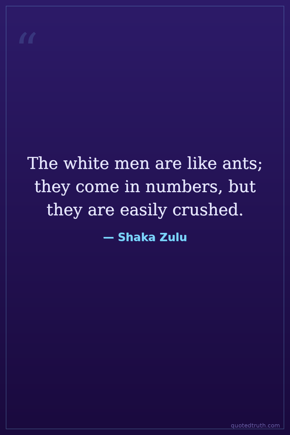 The white men are like ants; they come in numbers, but they are easily crushed.