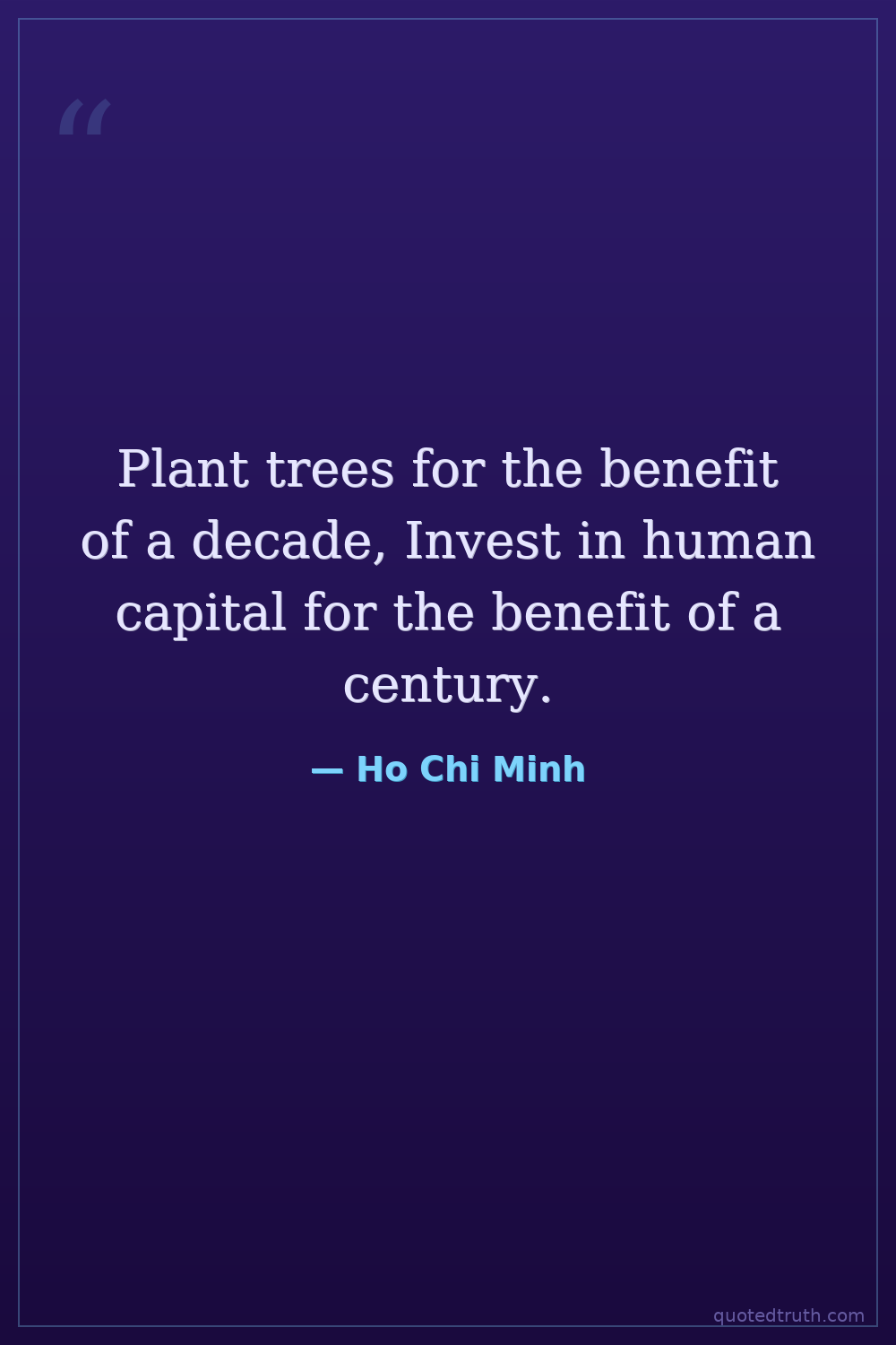Plant trees for the benefit of a decade, Invest in human capital for the benefit of a century.