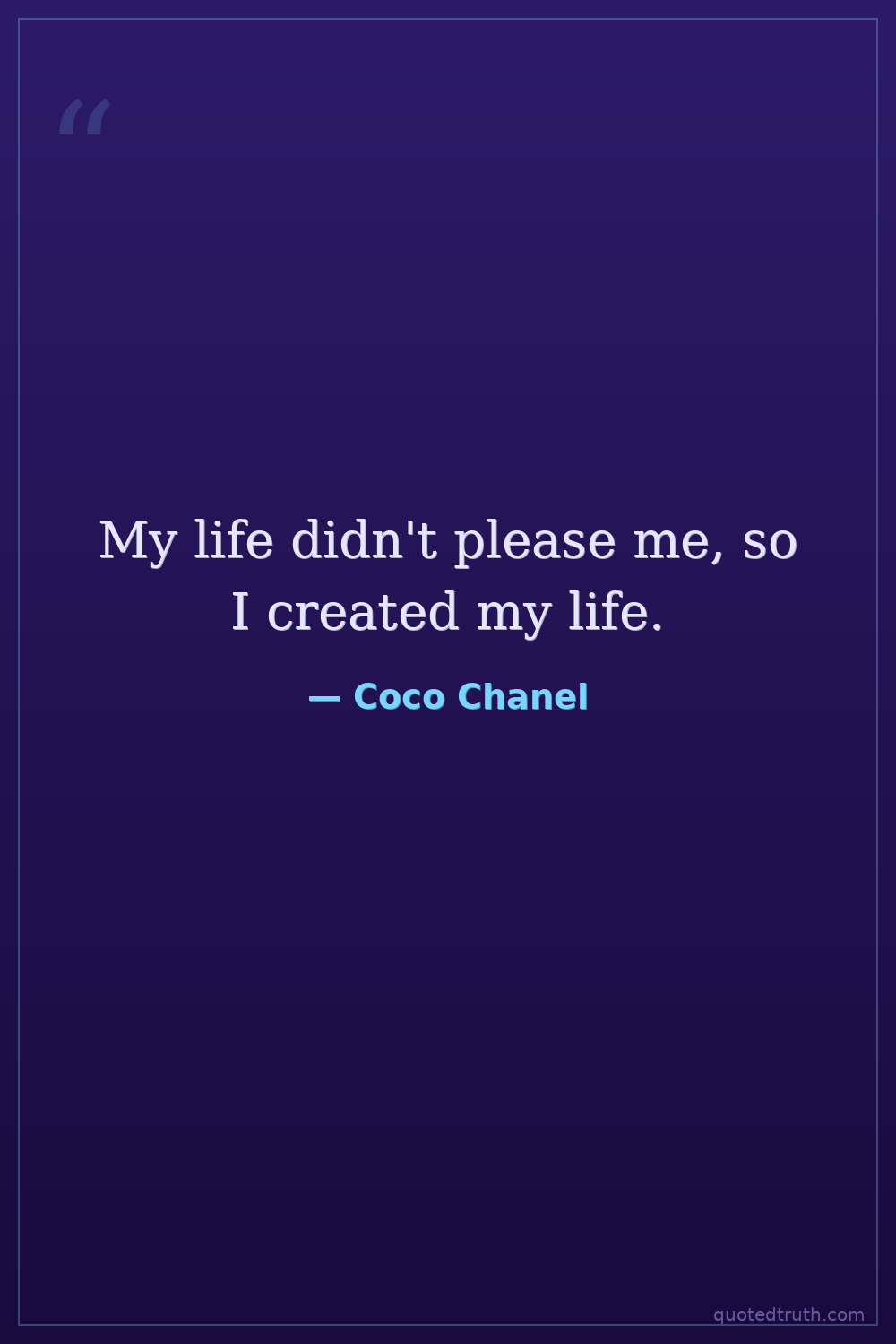 My life didn't please me, so I created my life.
