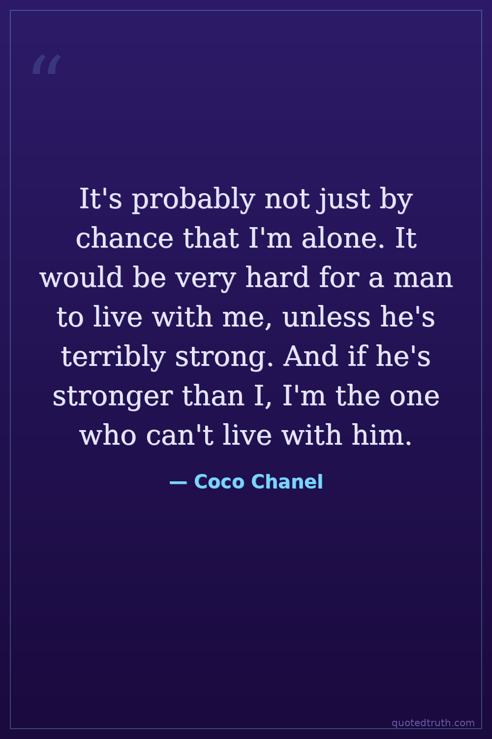 It's probably not just by chance that I'm alone. It would be very hard for a man to live with me, unless he's terribly strong. And if he's stronger than I, I'm the one who can't live with him.
