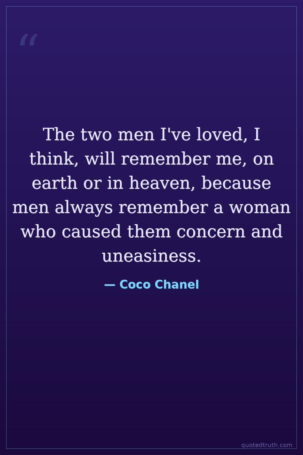 The two men I've loved, I think, will remember me, on earth or in heaven, because men always remember a woman who caused them concern and uneasiness.