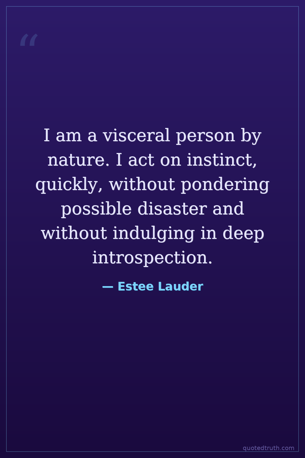 I am a visceral person by nature. I act on instinct, quickly, without pondering possible disaster and without indulging in deep introspection.