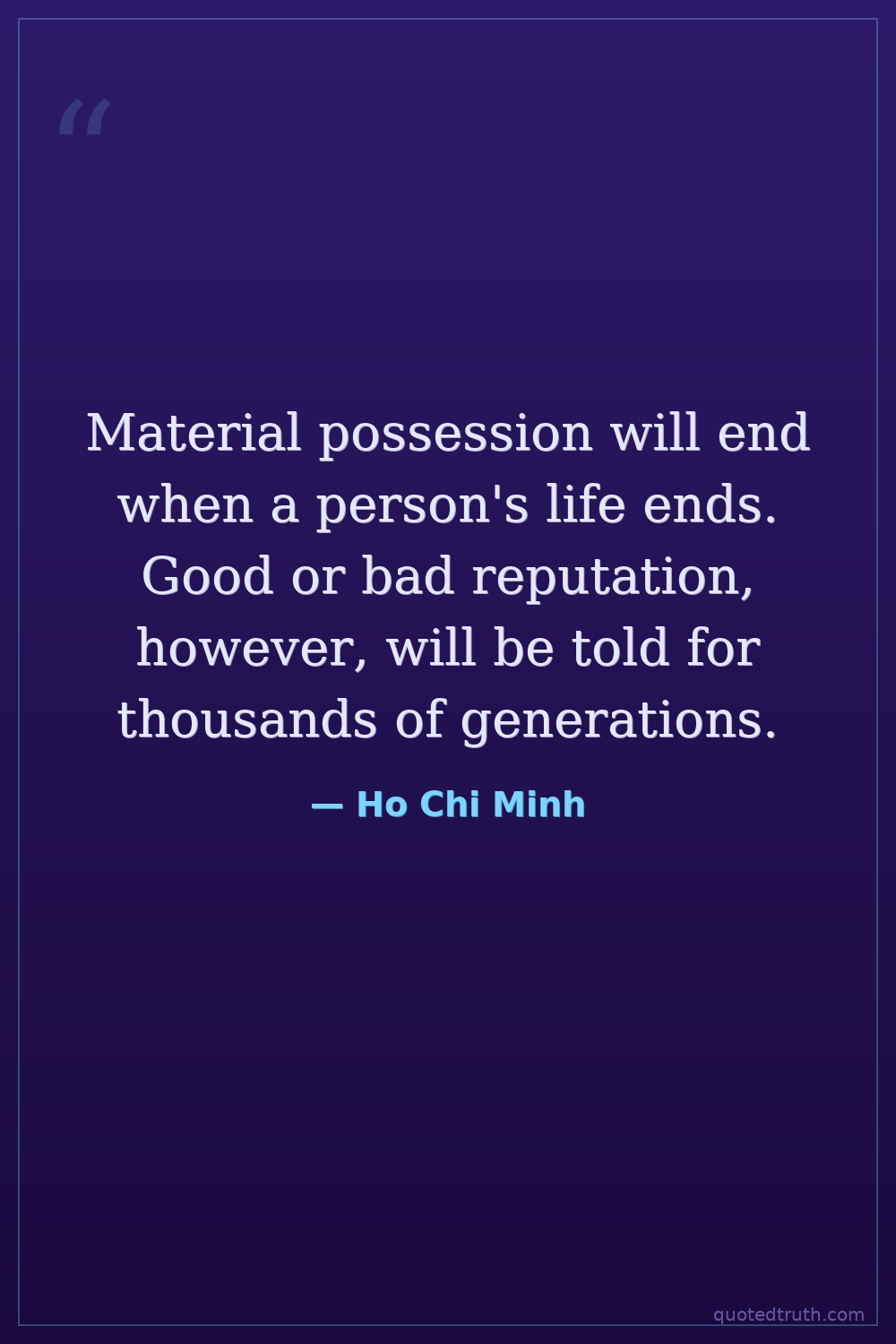 Material possession will end when a person's life ends. Good or bad reputation, however, will be told for thousands of generations.