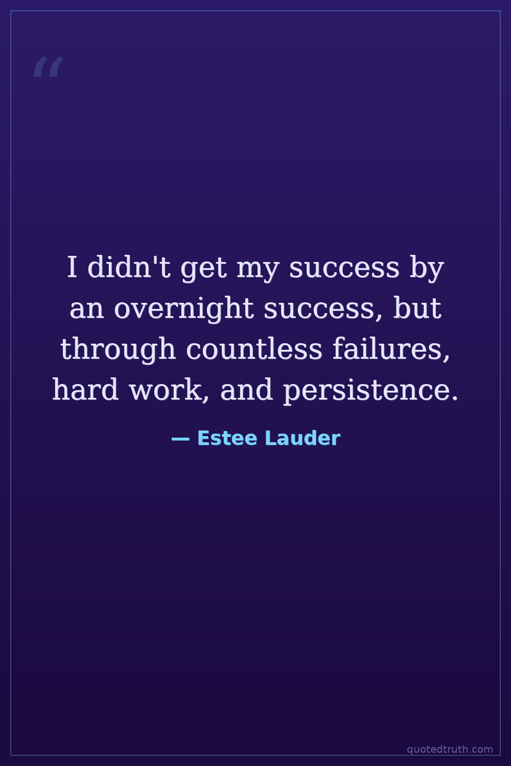 I didn't get my success by an overnight success, but through countless failures, hard work, and persistence.