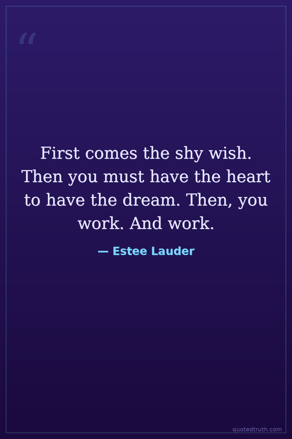 First comes the shy wish. Then you must have the heart to have the dream. Then, you work. And work.