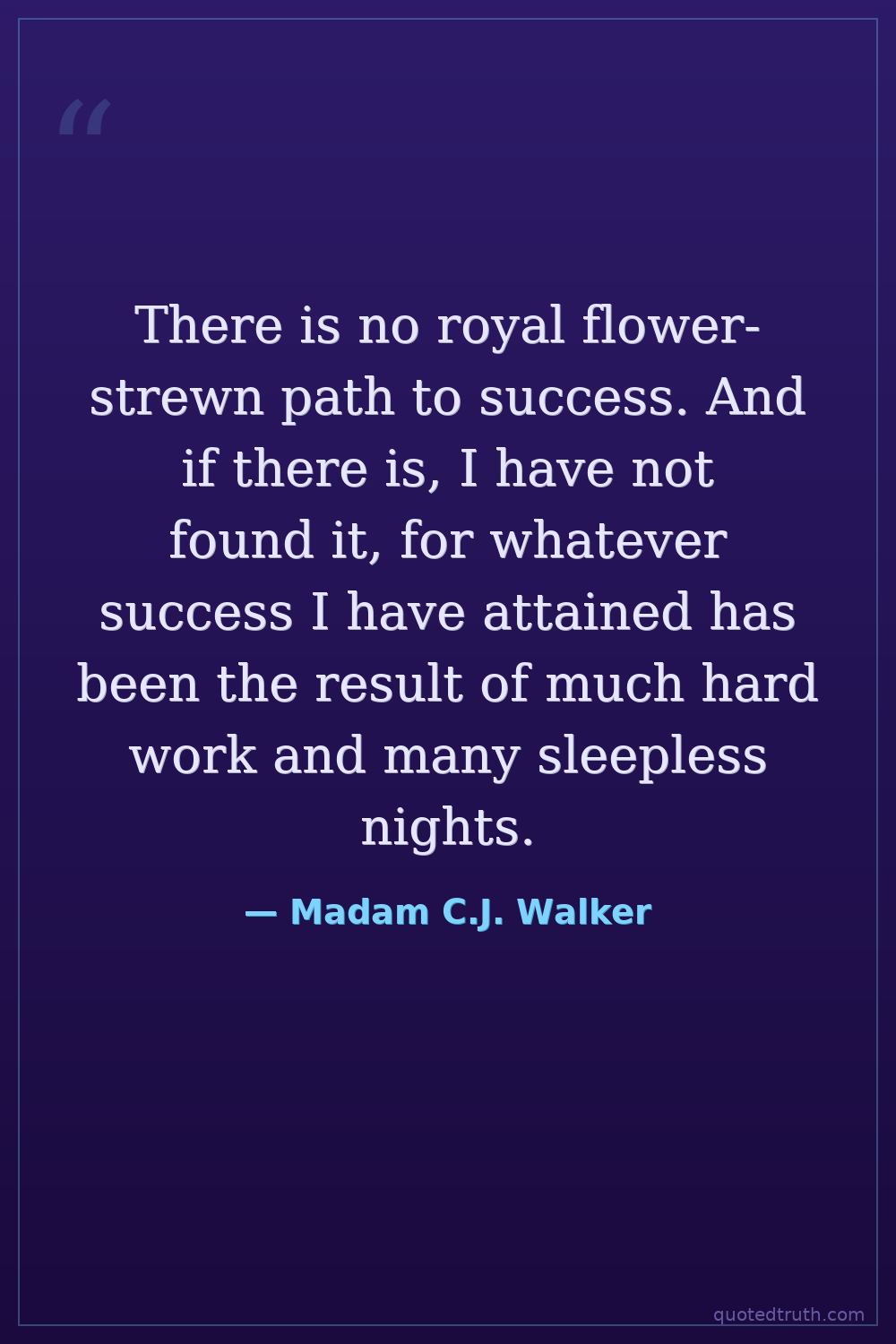 There is no royal flower-strewn path to success. And if there is, I have not found it, for whatever success I have attained has been the result of much hard work and many sleepless nights.