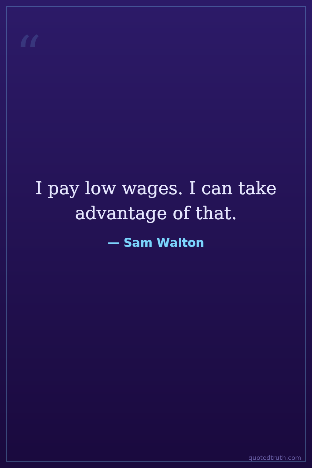 I pay low wages. I can take advantage of that.
