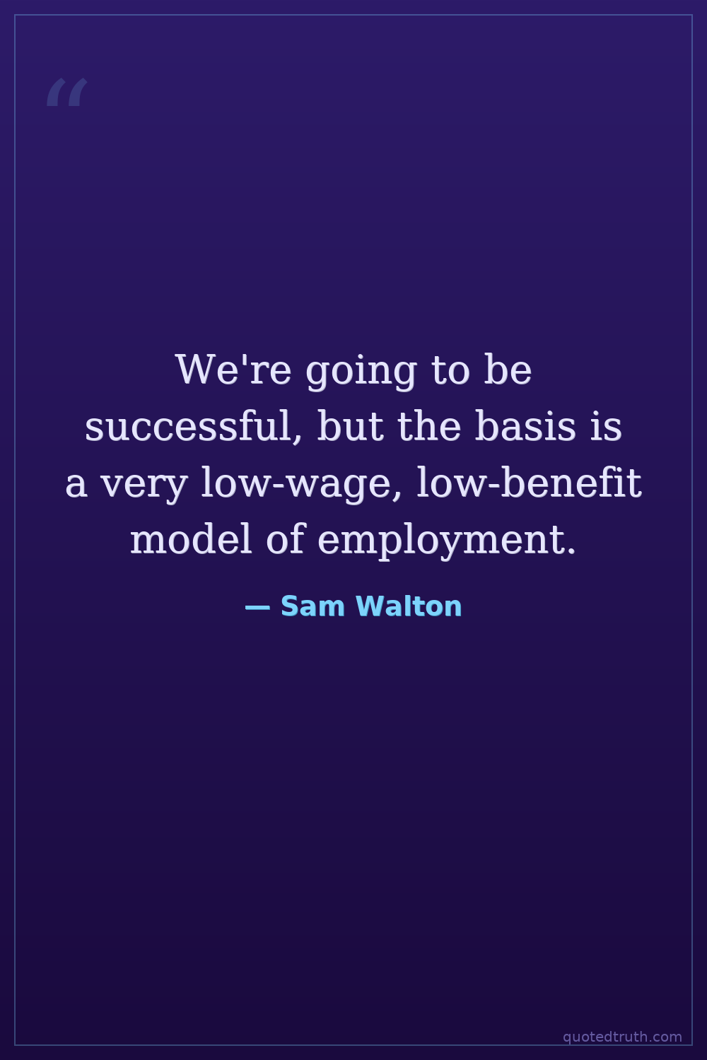 We're going to be successful, but the basis is a very low-wage, low-benefit model of employment.