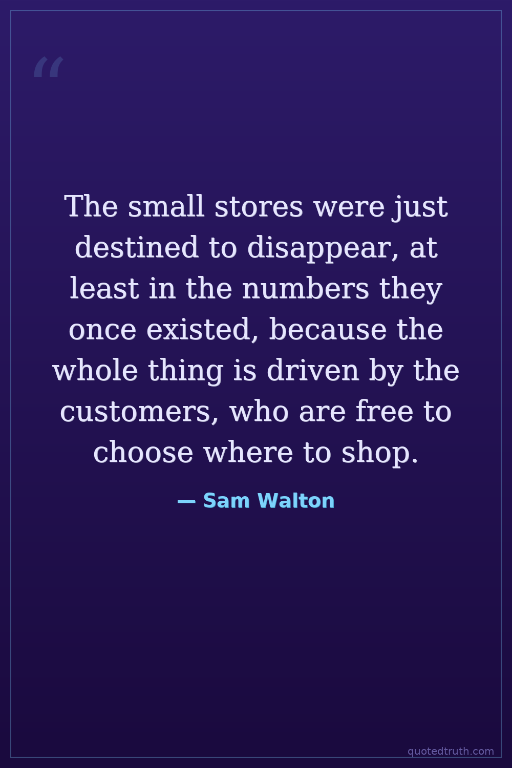 The small stores were just destined to disappear, at least in the numbers they once existed, because the whole thing is driven by the customers, who are free to choose where to shop.