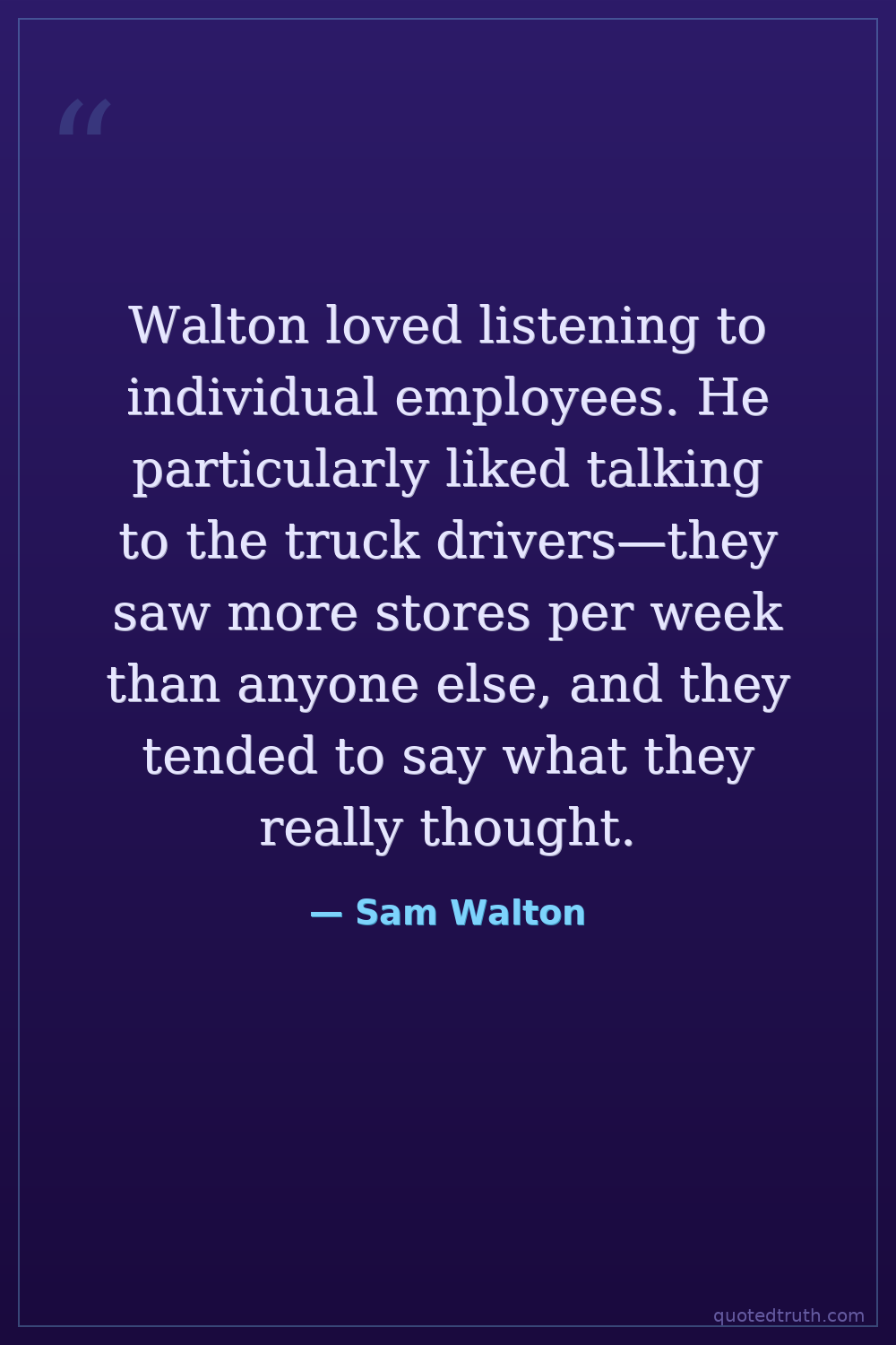 Walton loved listening to individual employees. He particularly liked talking to the truck drivers—they saw more stores per week than anyone else, and they tended to say what they really thought.