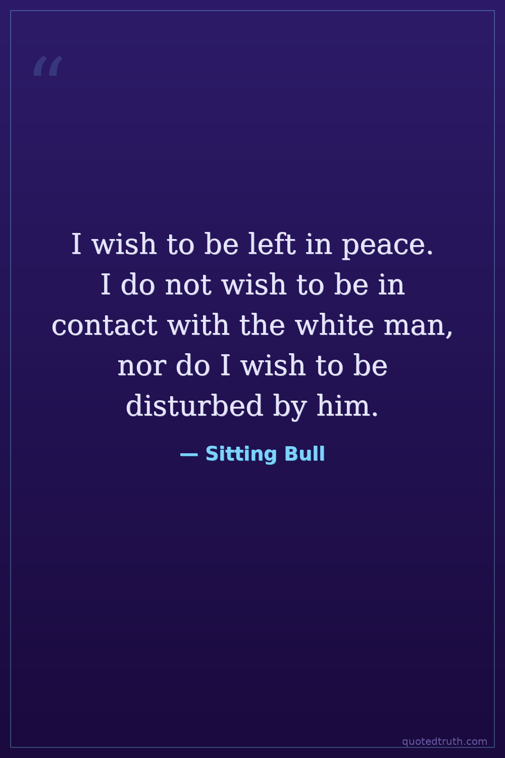 I wish to be left in peace. I do not wish to be in contact with the white man, nor do I wish to be disturbed by him.