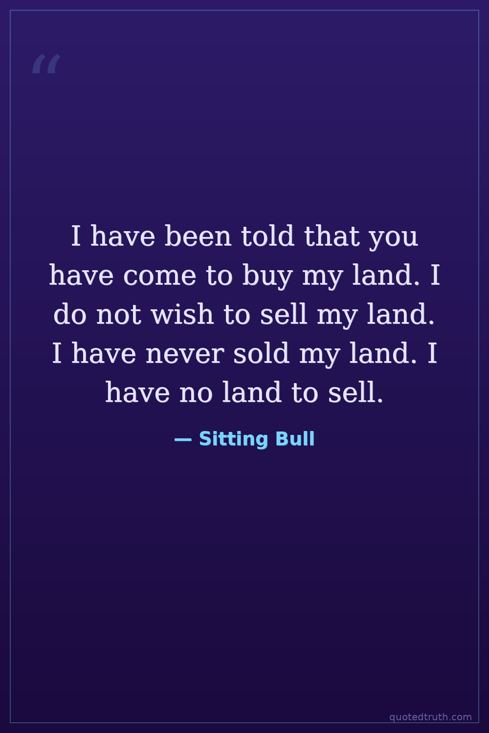I have been told that you have come to buy my land. I do not wish to sell my land. I have never sold my land. I have no land to sell.